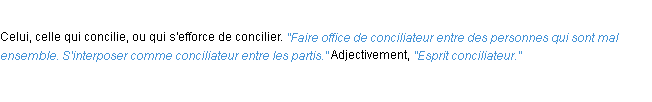 Définition de « conciliateur » de source académique (Académie Française, parution de 1986).