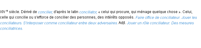 Ancienne définition académique pour le terme « conciliateur » (parue en 1835).