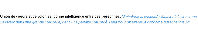 Ancienne définition « concorde » du dictionnaire académique Français, parution de l’année 1835.
