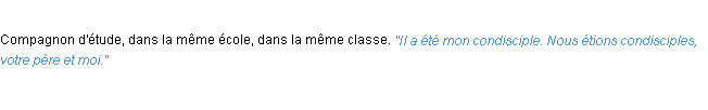Ancienne définition développée dans dictionnaire académique, 1798.Merci à Eloi et Mireille pour la numérisation du mot condisciple.