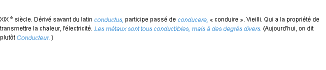 Définition « conductible » du dictionnaire académique Français, parution de l’année 1986.