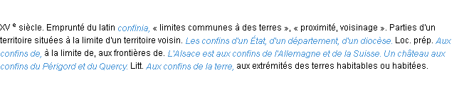 Ancienne signification du terme « confins », parution de 1798, dictionnaire académique Français.
