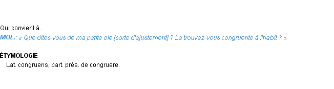 Signification développée en 1876 par Mr Littré (dictionnaire dit d’Emile Littré).Merci à Noella et Benjamine pour la numérisation du mot congruent.