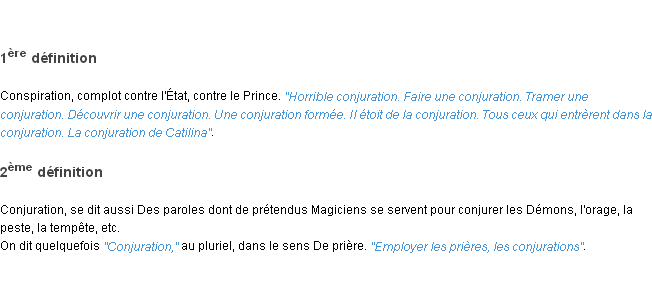 Signification du terme « conjuration », parution de 1932, dictionnaire académique Français.