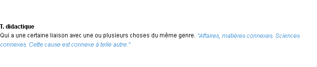 Définition de « connexe » de source académique (Académie Française, parution de 1986).