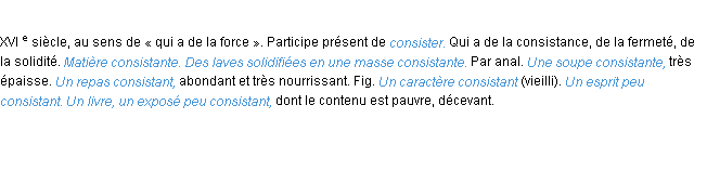 Définition académique pour le terme « consistant » (parue en 1932).