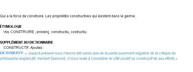 Signification du terme « constructif », parution de 1876 (dictionnaire le Littré).Merci à Pierre et Amaury pour la numérisation du mot constructif.