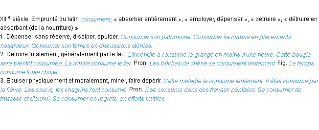 Ancienne signification du terme « consumer », parution de 1835, dictionnaire académique Français.