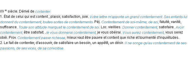 Signification éditée en 1986 pour le terme « contentement » par l’Académie Française.