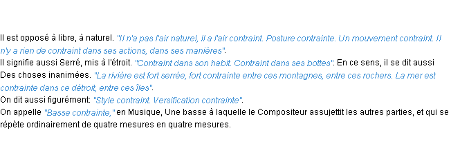 Ancienne signification éditée en 1798 pour le terme « contraint » par l’Académie Française.