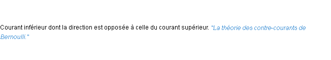Signification éditée en 1876 pour le terme « contre-courant » par Emile Littré.Merci à émilien et Madeline pour la numérisation du mot contre-courant.