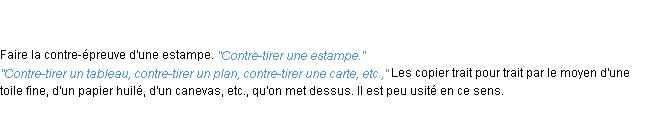 Définition « contre-tirer » du dictionnaire académique Français, parution de l’année 1932.