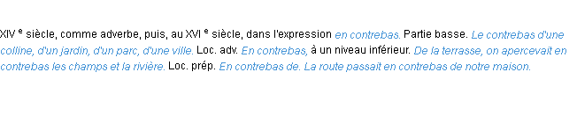 Définition de « contrebas » de source académique (Académie Française, parution de 1986).