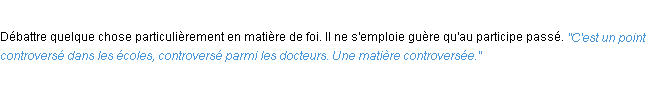 Définition du mot « controverser » par l’équipe de la-definition.fr (édition de 2011).
