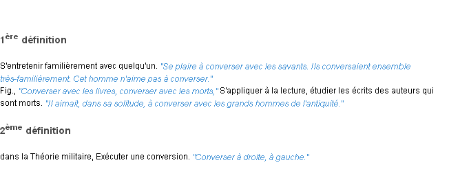 Signification éditée en 1932 pour le terme « converser » par l’Académie Française.