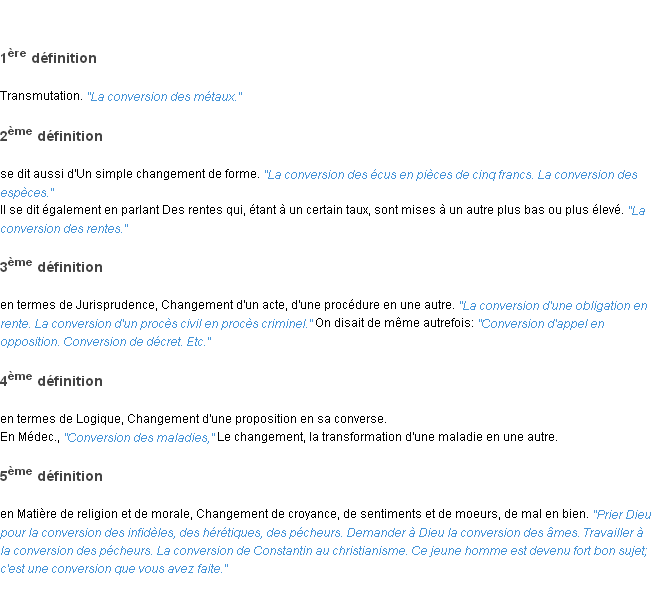 Définition du mot « conversion » par l’Académie Française (édition de 1986).