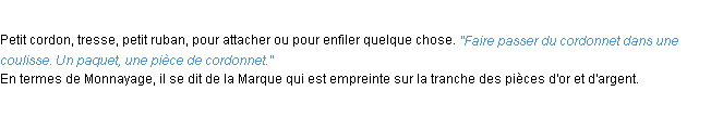 Signification éditée en 1932 pour le terme « cordonnet » par l’Académie Française.