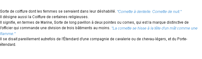 Ancienne définition « cornette » du dictionnaire académique Français, parution de l’année 1835.