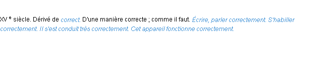 Signification éditée en 1986 pour le terme « correctement » par l’Académie Française.