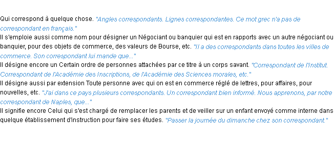 Définition académique pour le terme « correspondant » (parue en 1986).