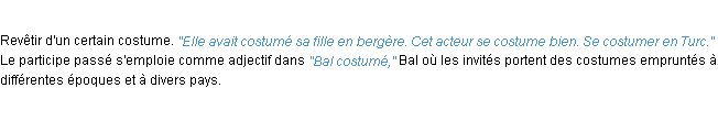Ancienne définition académique pour le terme « costumer » (parue en 1798).