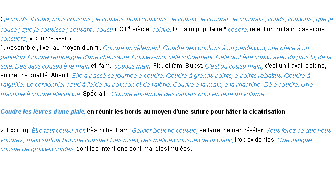 Définition du mot « coudre » par l’Académie Française (édition de 1986).