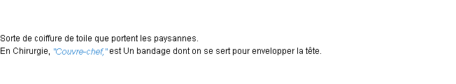 Ancienne définition développée dans dictionnaire académique, 17962.Merci à Virginie et Mélissa pour la numérisation du mot couvre-chef.