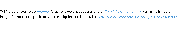 Signification du terme « crachoter », parution de 1986, dictionnaire académique Français.