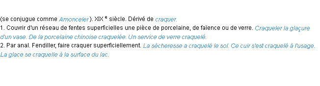 Signification développée en 1876 par Mr Littré (dictionnaire dit d’Emile Littré).Merci à Chloé et François pour la numérisation du mot craqueler.