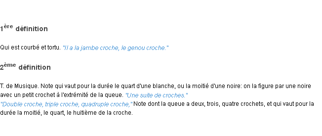 Définition du mot « croche » par l’Académie Française (édition de 1986).