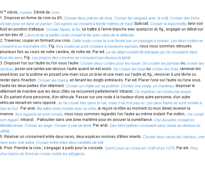 Définition du mot « croiser » par l’Académie Française (édition de 1986).