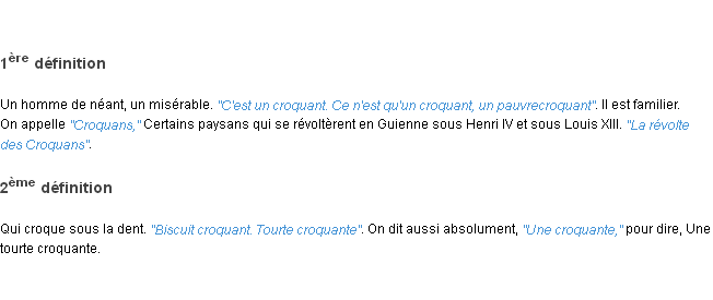 Ancienne signification issue du dico de l’Académie Française, parue en 1798.Merci à Gwenaelle et Philippe pour la numérisation du mot croquant.