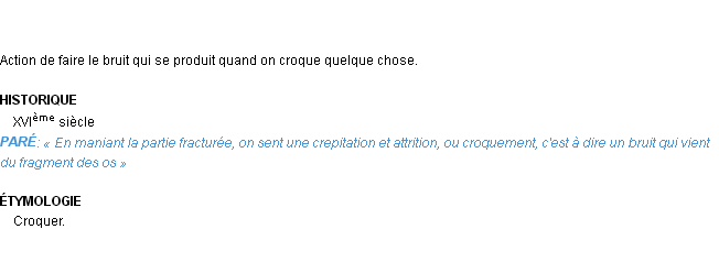 Signification éditée en 1876 pour le terme « croquement » par Emile Littré.