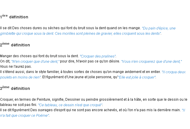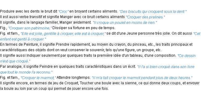 Ancienne définition « croquer » du dictionnaire académique Français, parution de l’année 1835.