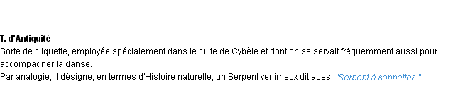 Définition du mot « crotale » (source wiktionary 2011).Merci à Armand et étienne pour la numérisation du mot crotale.