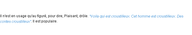Ancienne signification éditée par l’Académie Française, année 1798.Merci à éloise et Marine pour la numérisation du mot croustilleux.
