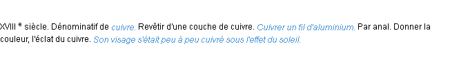 Définition du mot « cuivrer » par l’Académie Française (édition de 1986).