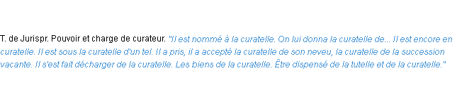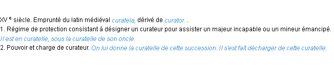 Ancienne signification parue en 1798 dans dictionnaire de l’Académie Française.Merci à Fabien et Sacha pour la numérisation du mot curatelle.
