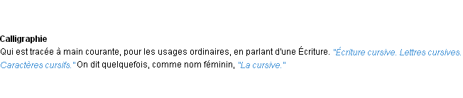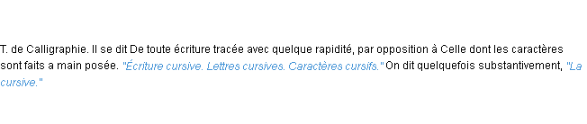 Ancienne signification éditée en 1835 pour le terme « cursif » par l’Académie Française.