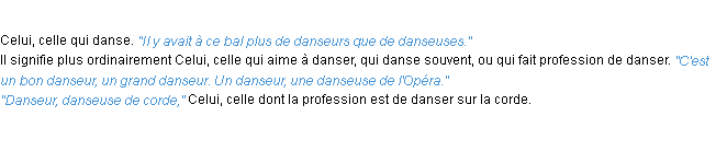 Définition académique pour le terme « danseur » (parue en 1986).