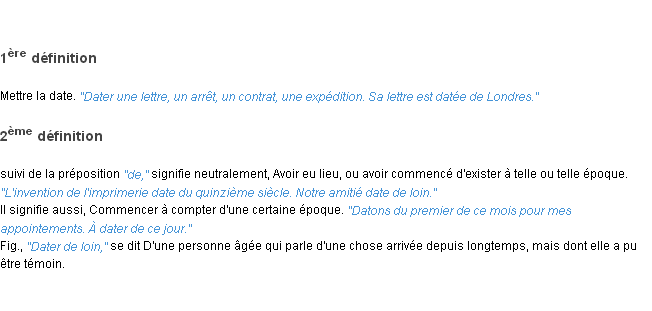 Signification éditée en 1986 pour le terme « dater » par l’Académie Française.