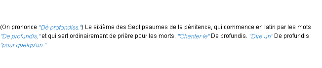 Définition développée dans dictionnaire d’Emile Littré (ancienne édition de 1876).Merci à Mignon et Margot pour la numérisation du mot de profundis.