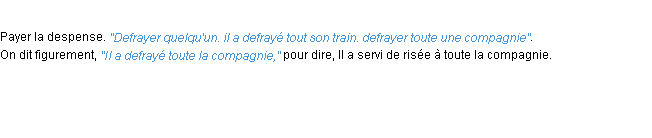 Ancienne signification issue du dico de l’Académie Française, parue en 1694.Merci à Michèle et Ghislain pour la numérisation du mot defrayer.