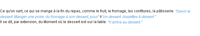 Ancienne définition académique pour le terme « dessert » (parue en 1798).Merci à Nicolas et Olivie pour la numérisation du mot dessert.