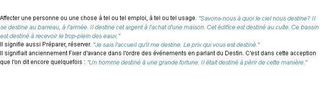 Signification du terme « destiner », parution de 1932, dictionnaire académique Français.
