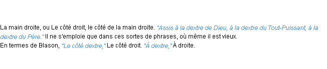 Signification éditée en 1932 pour le terme « dextre » par l’Académie Française.