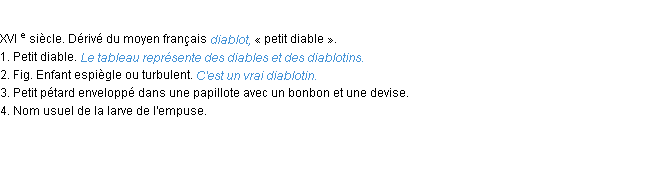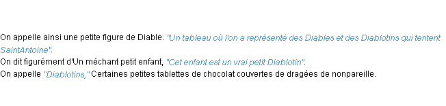 Ancienne signification issue du dico de l’Académie Française, parue en 1798.Merci à Arianne et Yves pour la numérisation du mot diablotin.