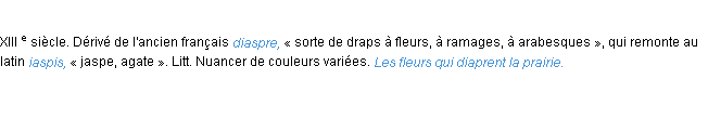 Ancienne signification parue en 1835 dans dictionnaire de l’Académie Française.Merci à Hugues et Nicolas pour la numérisation du mot diaprer.