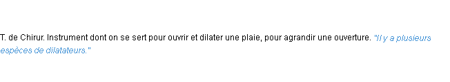 Définition issue du dictionnaire wiktionary pour le mot « dilatateur ».Merci à Mignon et Clémence pour la numérisation du mot dilatateur.
