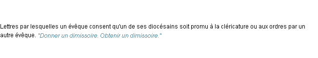 Signification du terme « dimissoire », parution de 1986, dictionnaire académique Français.